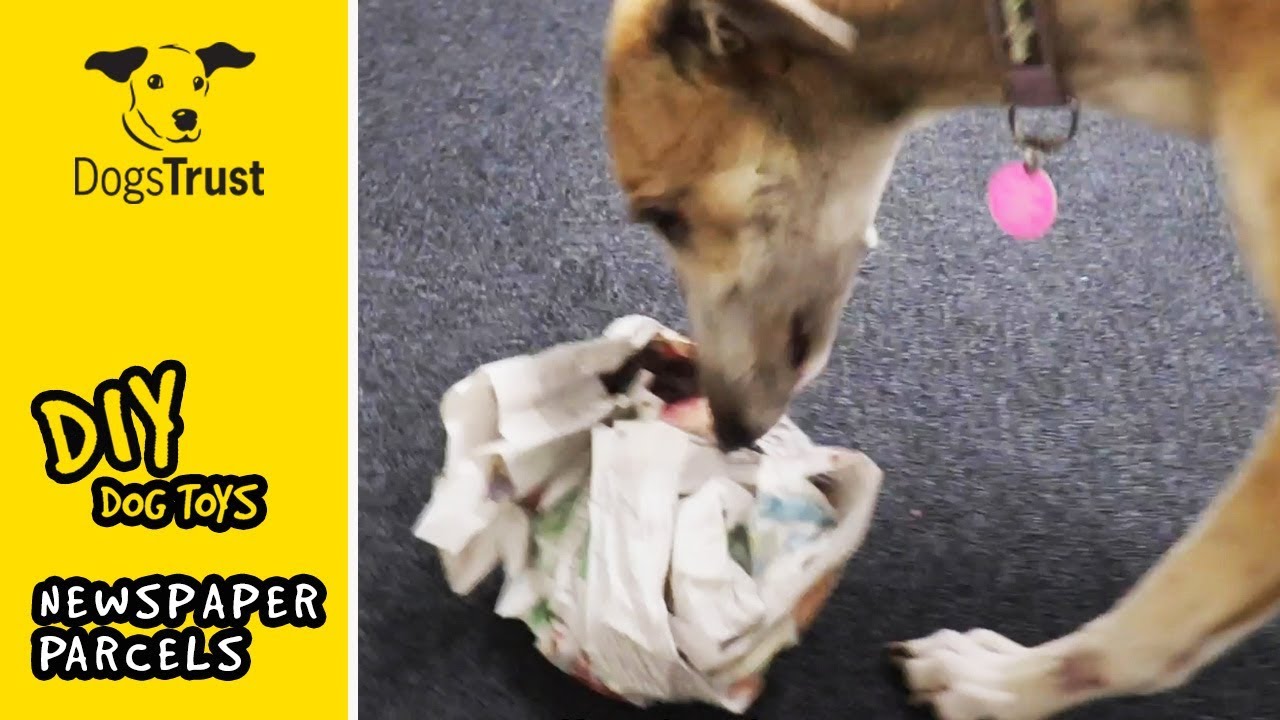 - Put the parcel on the floor near your dog. Encourage them to search through the layers of newspaper until they find the treats.